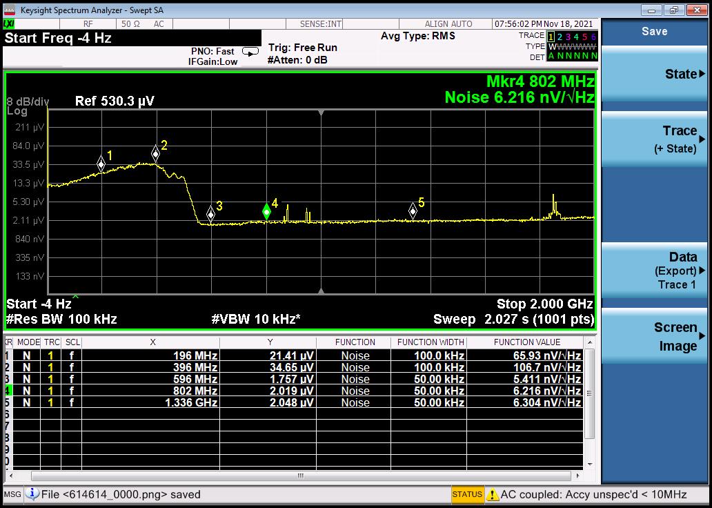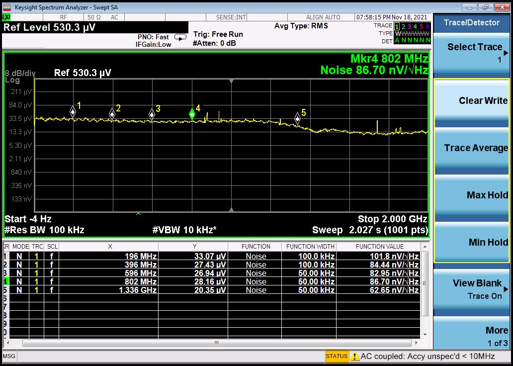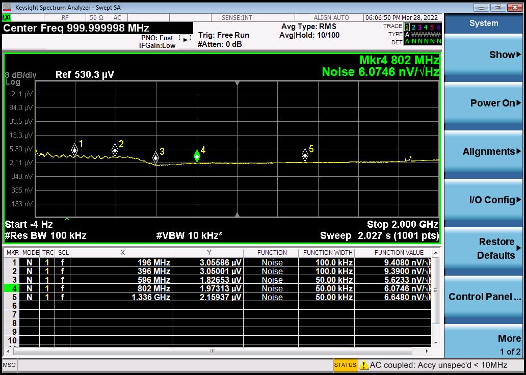图6 Thorlab APD430(带宽400MHz)噪声谱密度